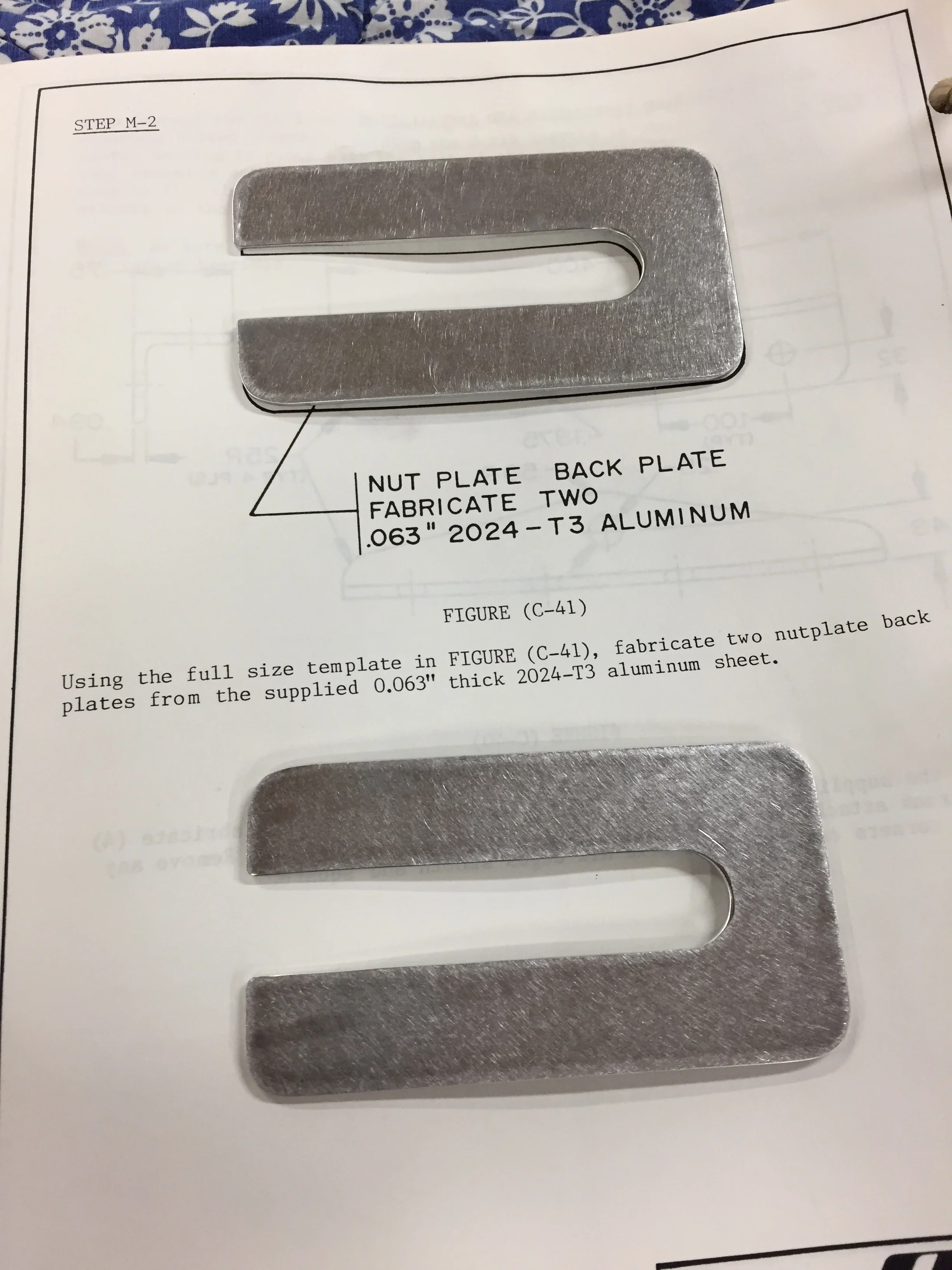 I also made the backing plates that hold the nut plates. These are made from 2024-T3 aluminum .063" thick.