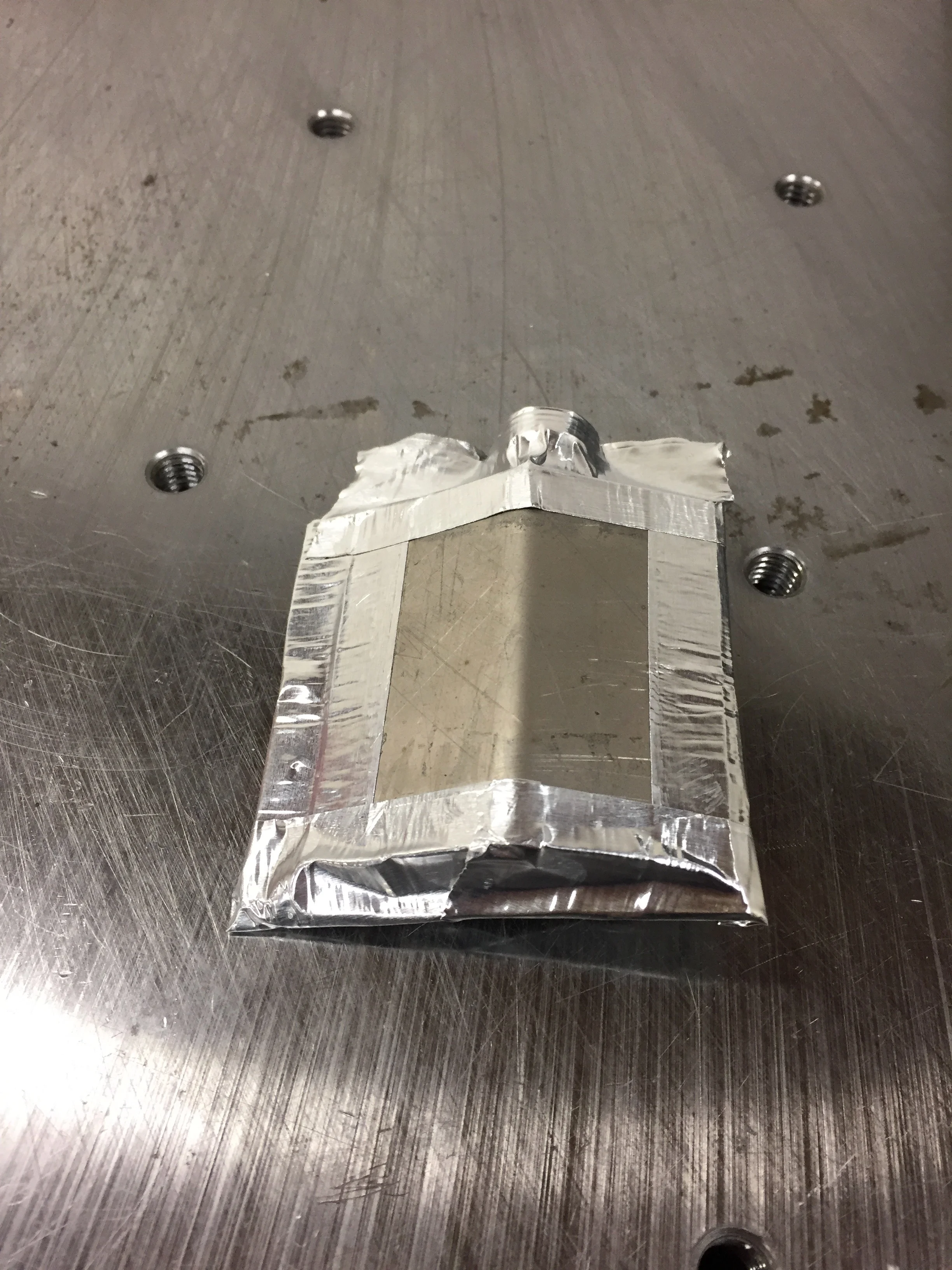 When welding titanium, every part of the joint must be shielded with argon. I made this tent to cover the back side of the welded and tape it on with aluminum foil tape.